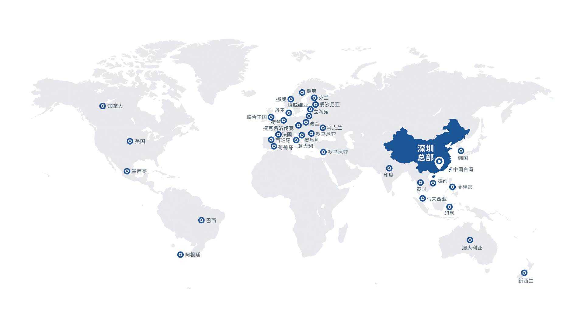 立足于國內(nèi)深圳、張家港、常州、天津、長沙、蘇州、濟(jì)南生產(chǎn)基地與備品備件庫,國內(nèi)外轄180+辦事處,在100多個國家和地區(qū)設(shè)立銷售服務(wù)機(jī)構(gòu),為全球用戶提供高品質(zhì)的產(chǎn)品與優(yōu)質(zhì)高效的服務(wù)。